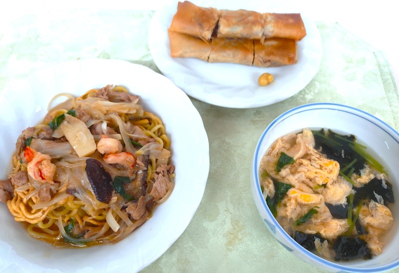 ・五目焼きそば ・春巻き ・のりと卵のスープ ![]() |