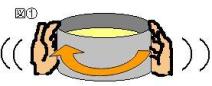 ※図1の様に回して遠心力で平らにしてから、上から2回ほどトントンと垂直に落として空気を抜きます。(最初の1回を強めに落とすとキメが揃う) |