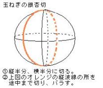 2 豚肉は3cm幅に切ります。玉ねぎ、ニンジンは銀杏切りにします。 (玉ねぎの銀杏切り図を参照)