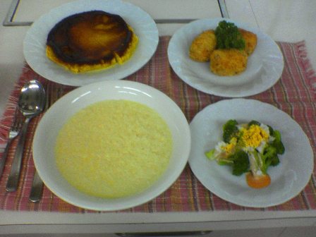 チーズ入りコロッケ リゾット ブロッコリーのミモザサラダ パンプキンプリン |