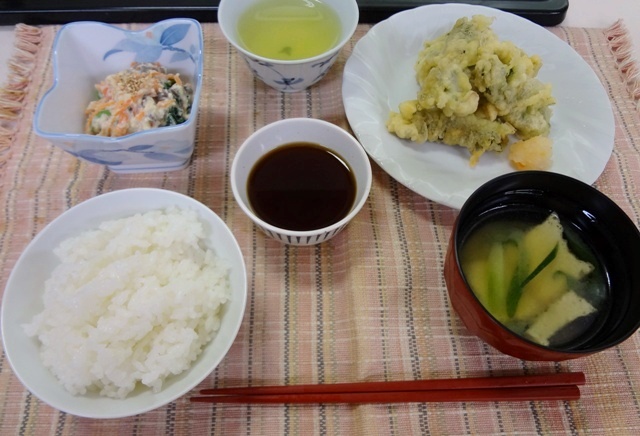 あじのしそ巻き揚げ にんじんの白和え 厚揚げのみそ汁