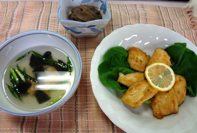 鶏肉のレモン風味焼き こんにゃくの落花生和え 干しえびのスープ ![]() |